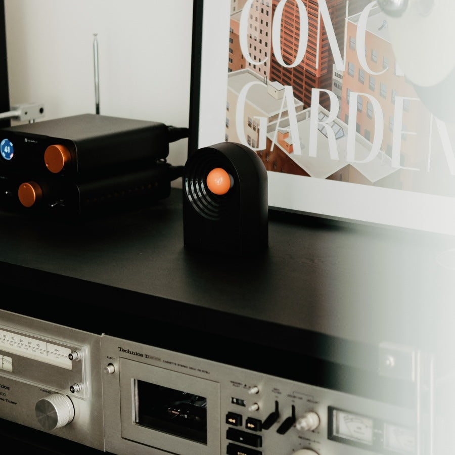 - Compact, minimalist design fits any room or setup