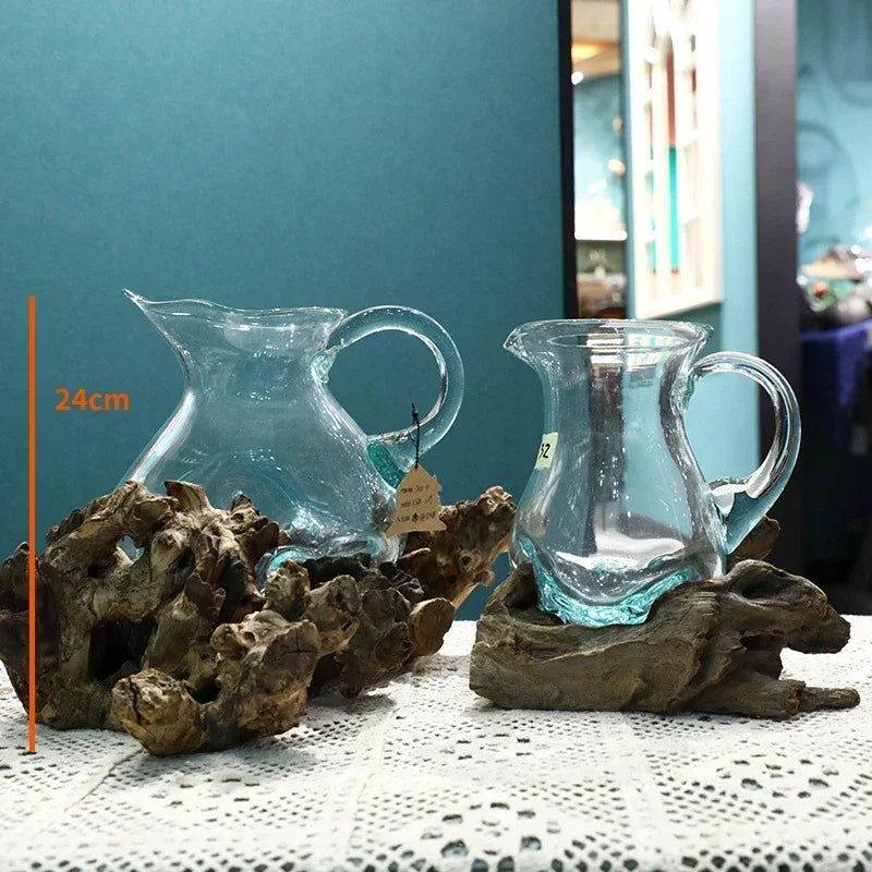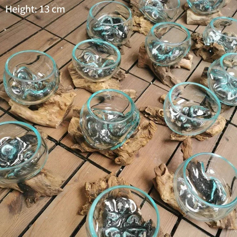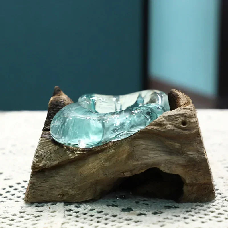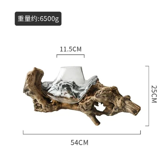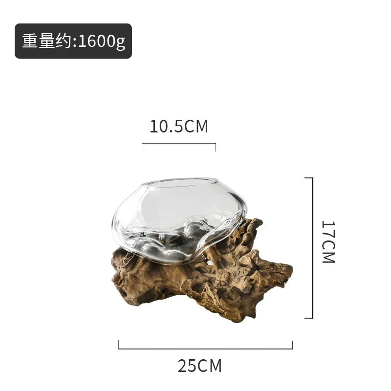 Natural wood frame with clear glass vessel