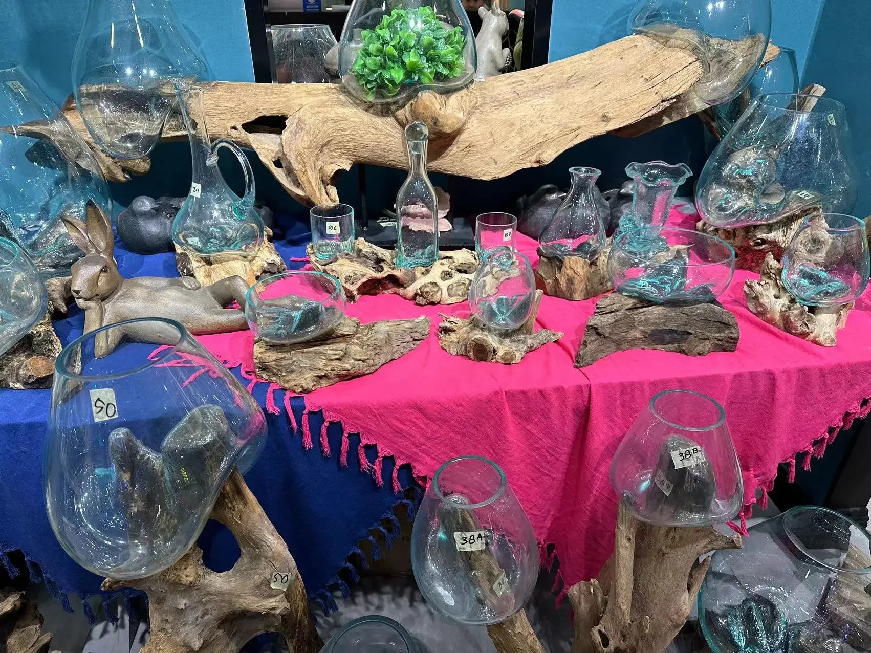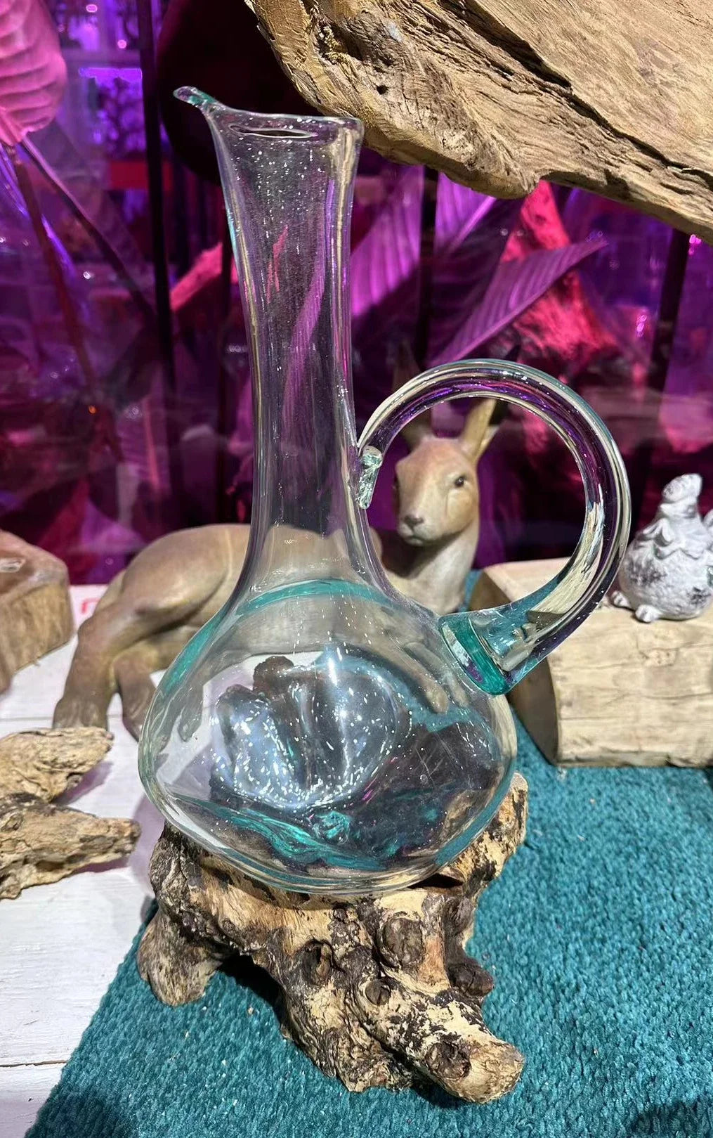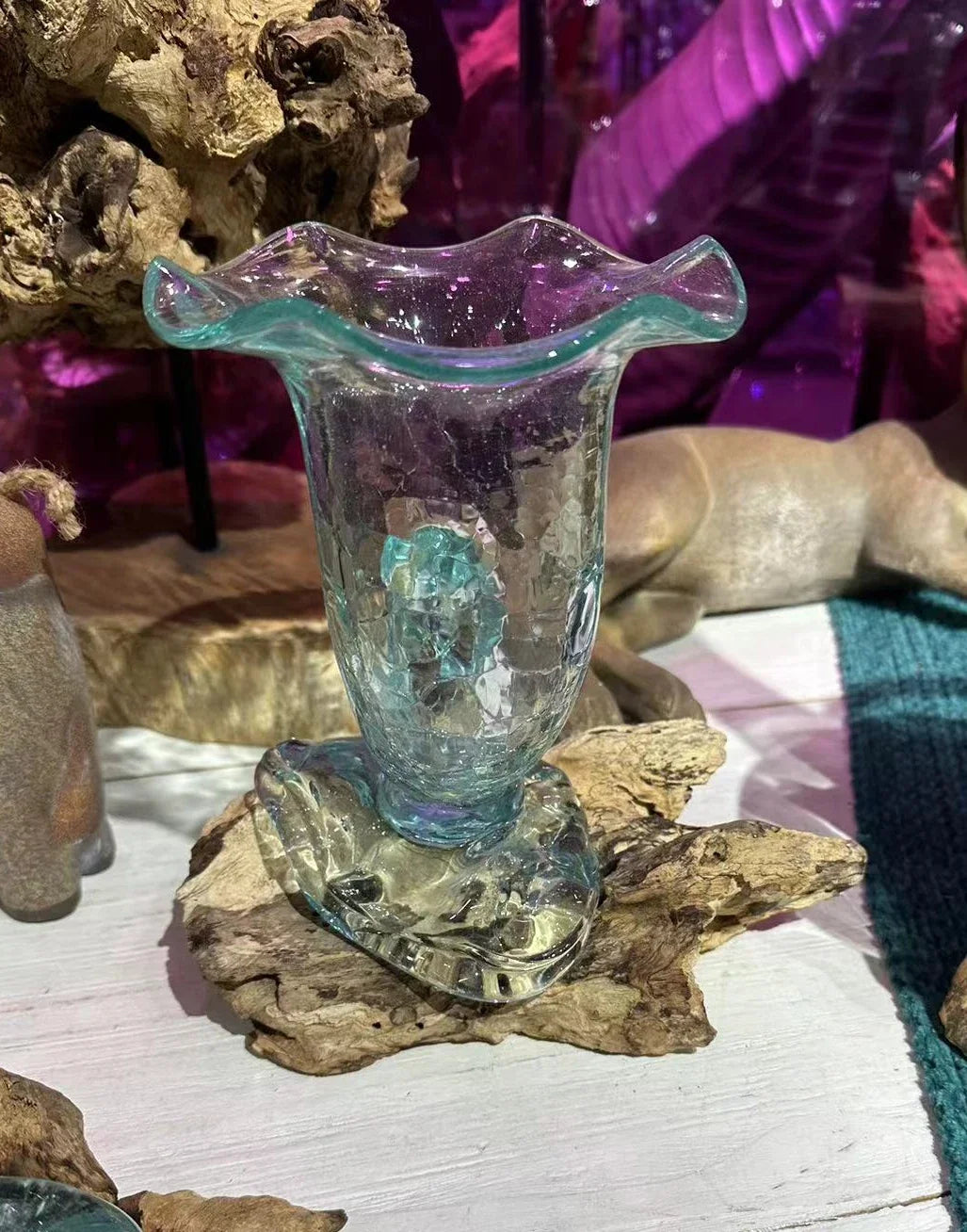 Natural wood frame with clear glass vessel